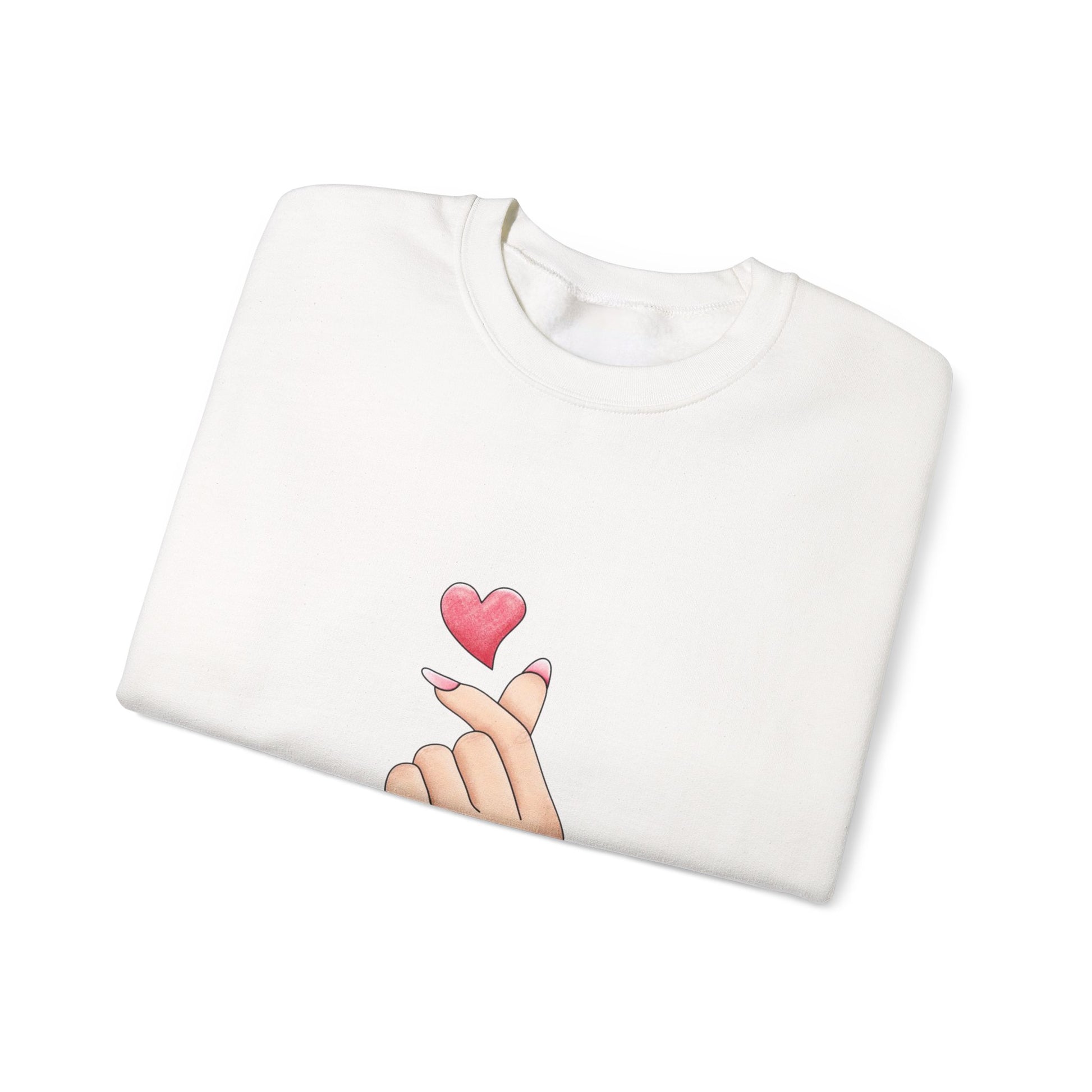 Crewneck Sweatshirt — K-Pop Finger Heart Design (Front Heart Hand, Back 'You' Location Map)