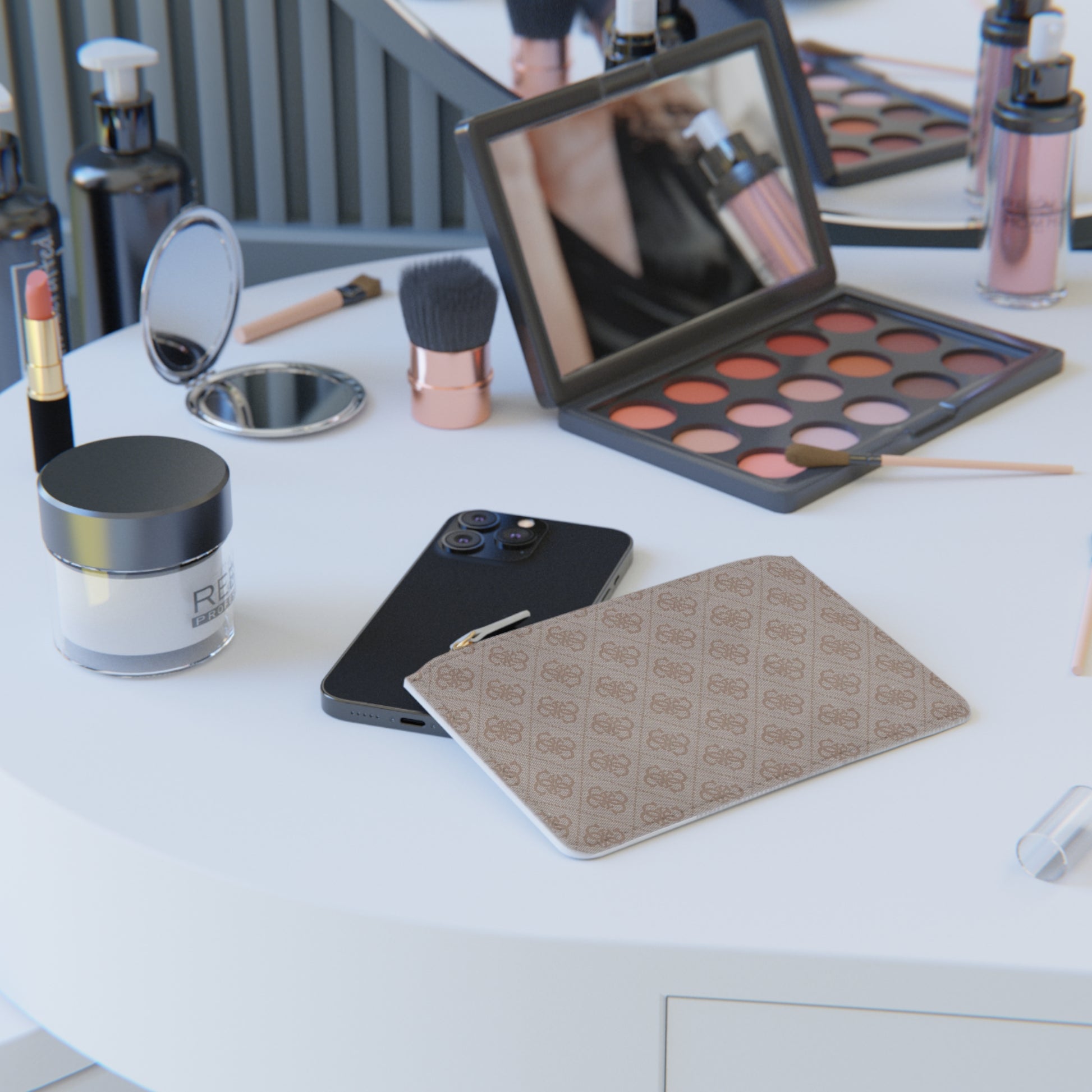 Mini Clutch Bag – Neutral Monogram Zip Pouch (Stylish Wallet, Travel Organizer)